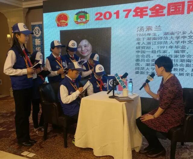 新华小记者向汤素兰提问。