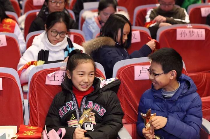 莅临颁奖典礼的领导为12名少年文学之星颁发了奖杯、证书和奖金,并鼓励他们再接再厉、再创佳绩。现场气氛积极向上,充满喜气。获得“浙江省少年文学之星”称号的杭州外国语学校虞璧祯,杭州市采荷实验学校周航代表浙江省少年文学之星获奖者发言。