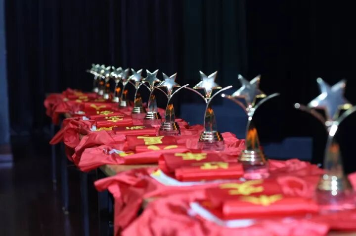 主席台领导为少年文学之星颁发证书、奖杯和奖金