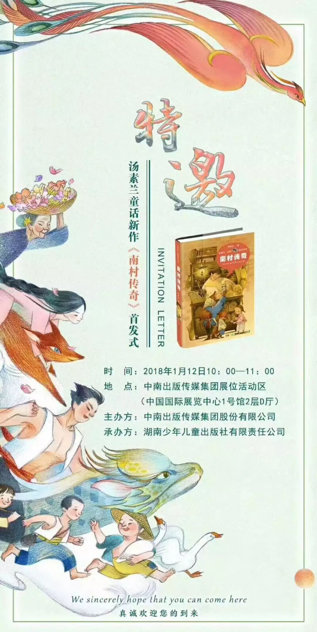 【新书消息】汤素兰童话新作《南村传奇》1月12日将在北京国际图书博览会举行首发式